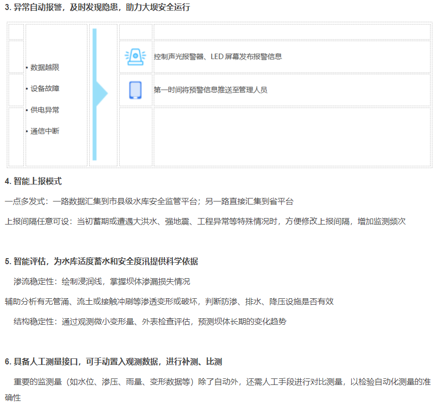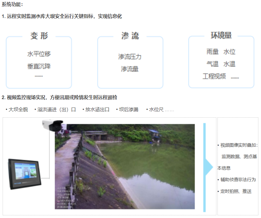 水庫大壩是攔洪蓄水和調節(jié)水流的水利工程建筑物,《國務院辦公廳關于切實加強水庫除險加固和運行管護工作的通知》(國辦發(fā) [2021] 8號),以吸2021年度總河湖長會議,均要求加快建設水庫大壩安全監(jiān)測設施,提升信息化管理能力,健全水庫大壩安全運行監(jiān)測系統(tǒng)。水庫大壩安全監(jiān)測項目主要包括滲壓滲流和壩體的位移、沉降和變形監(jiān)測,監(jiān)測范圍包括壩體、壩基,以吸影響工程安全的泄輸水建筑物和近壩岸坡等。